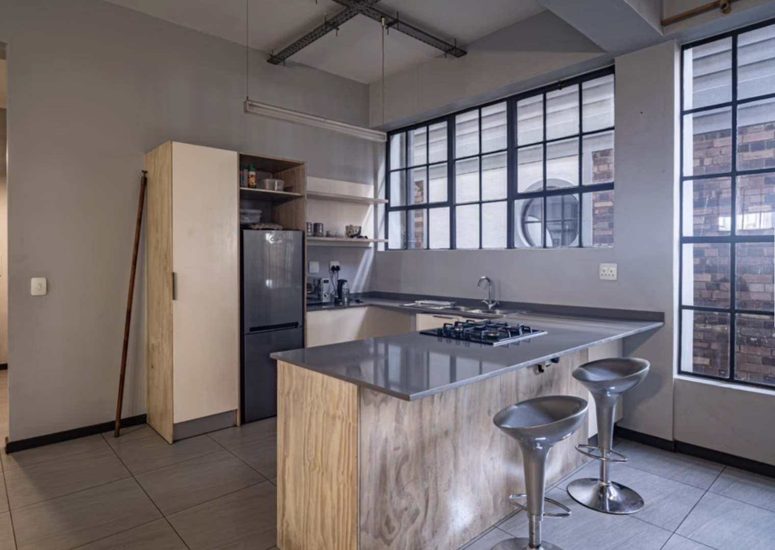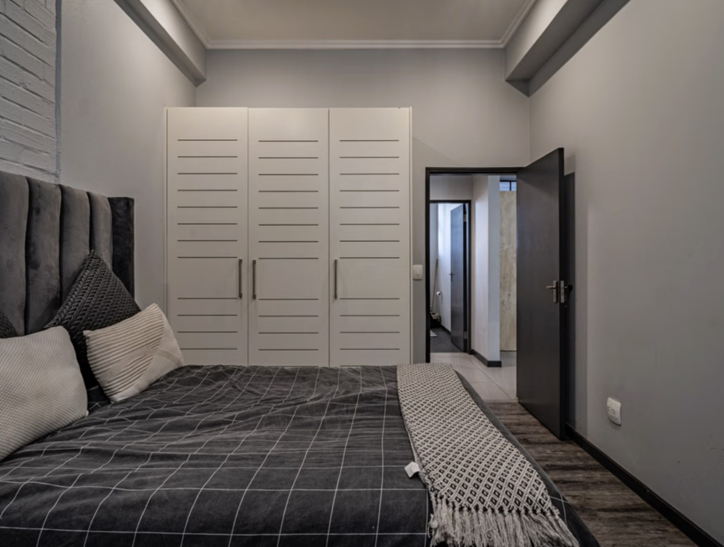 The bedroom is well-proportioned with built-in cupboards and positioned to offer both privacy and a sense of openness — perfect for professionals or students wanting a trendy yet functional living space.