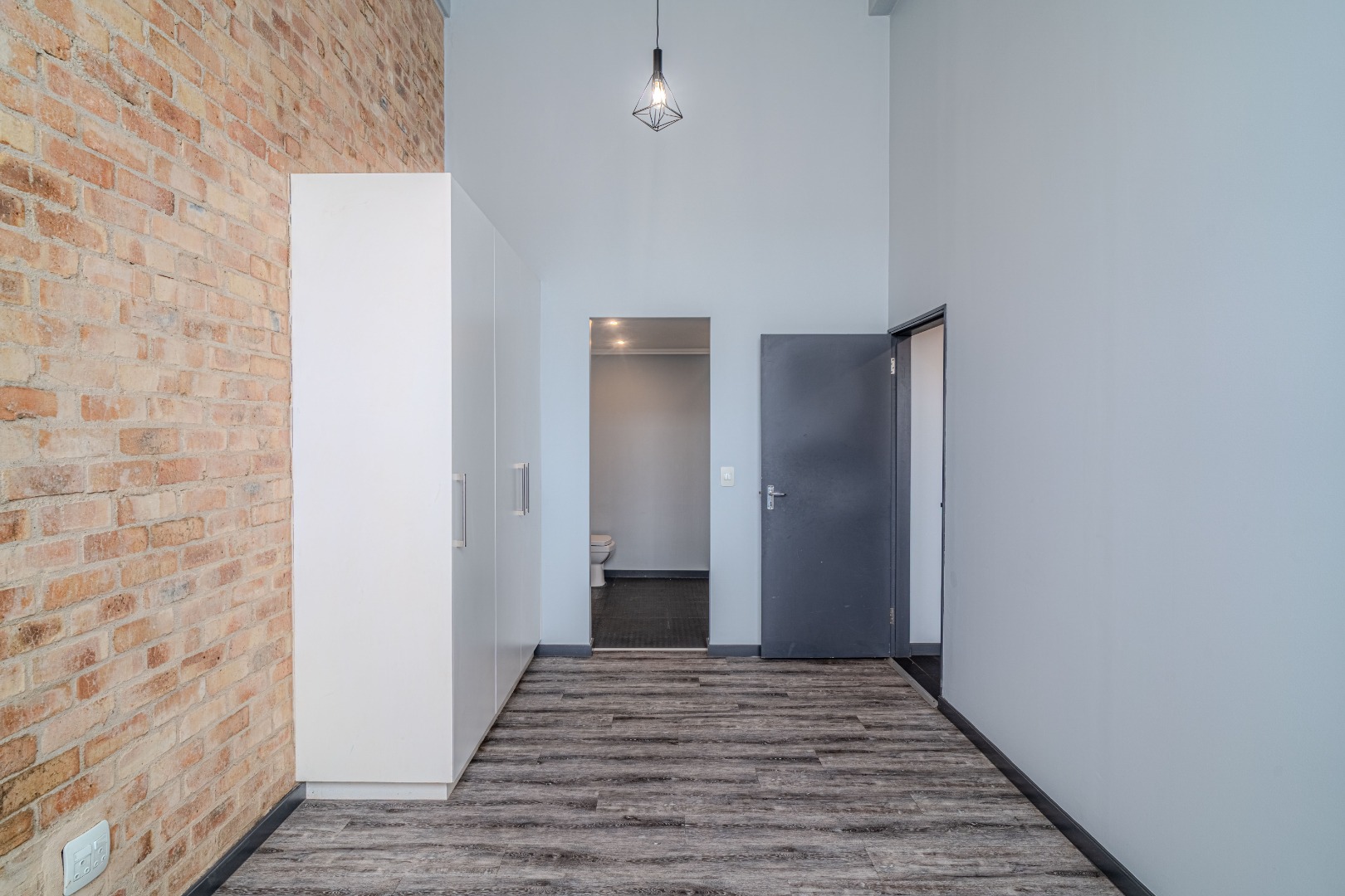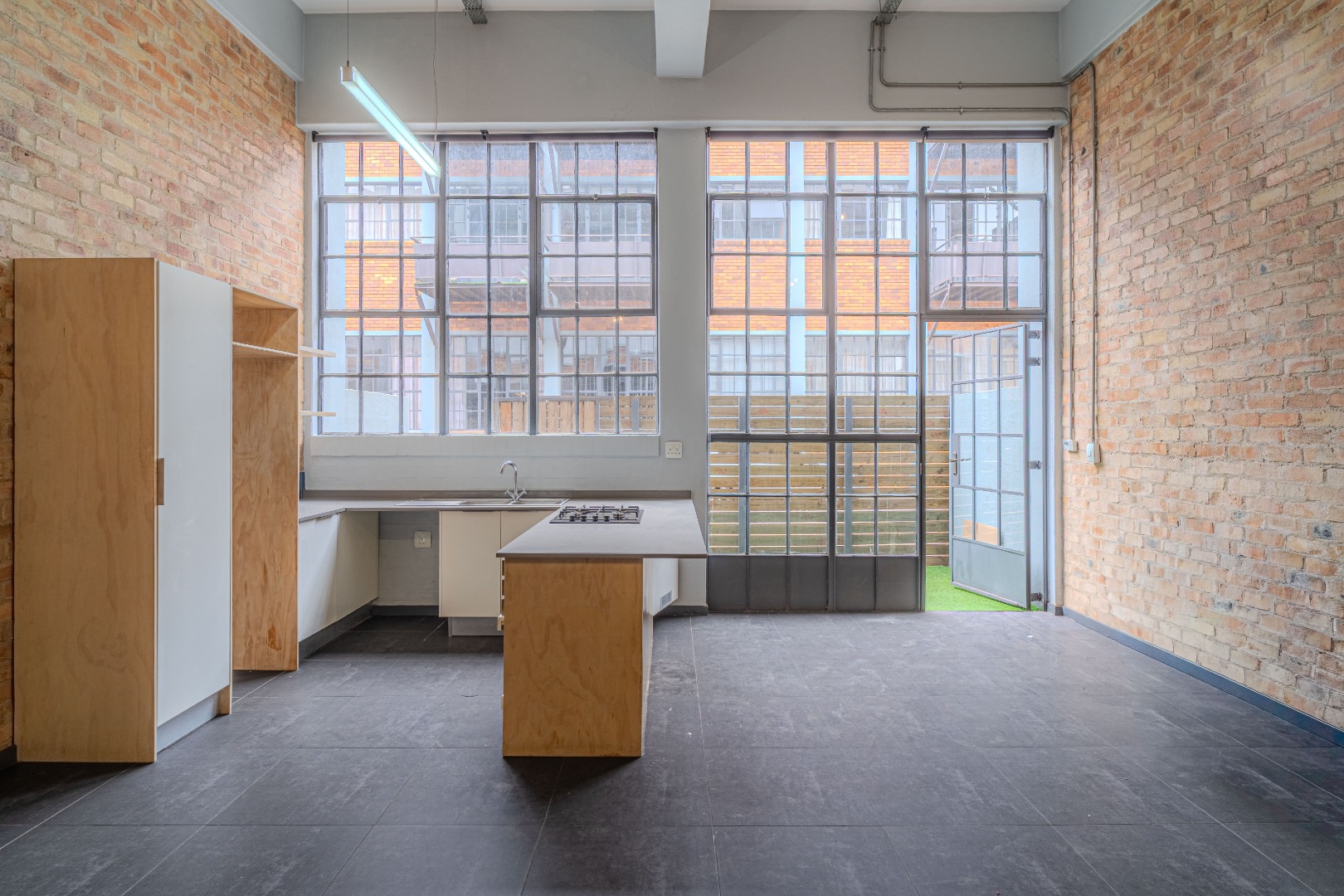 Boasting exposed brick feature walls, soaring ceilings, and oversized industrial-style windows, this home is filled with natural light and character. The expansive open-plan living and dining area flows effortlessly into a sleek, contemporary kitchen fitted with a centre island, ample cupboard space, and quality finishes, ideal for entertaining and everyday living.