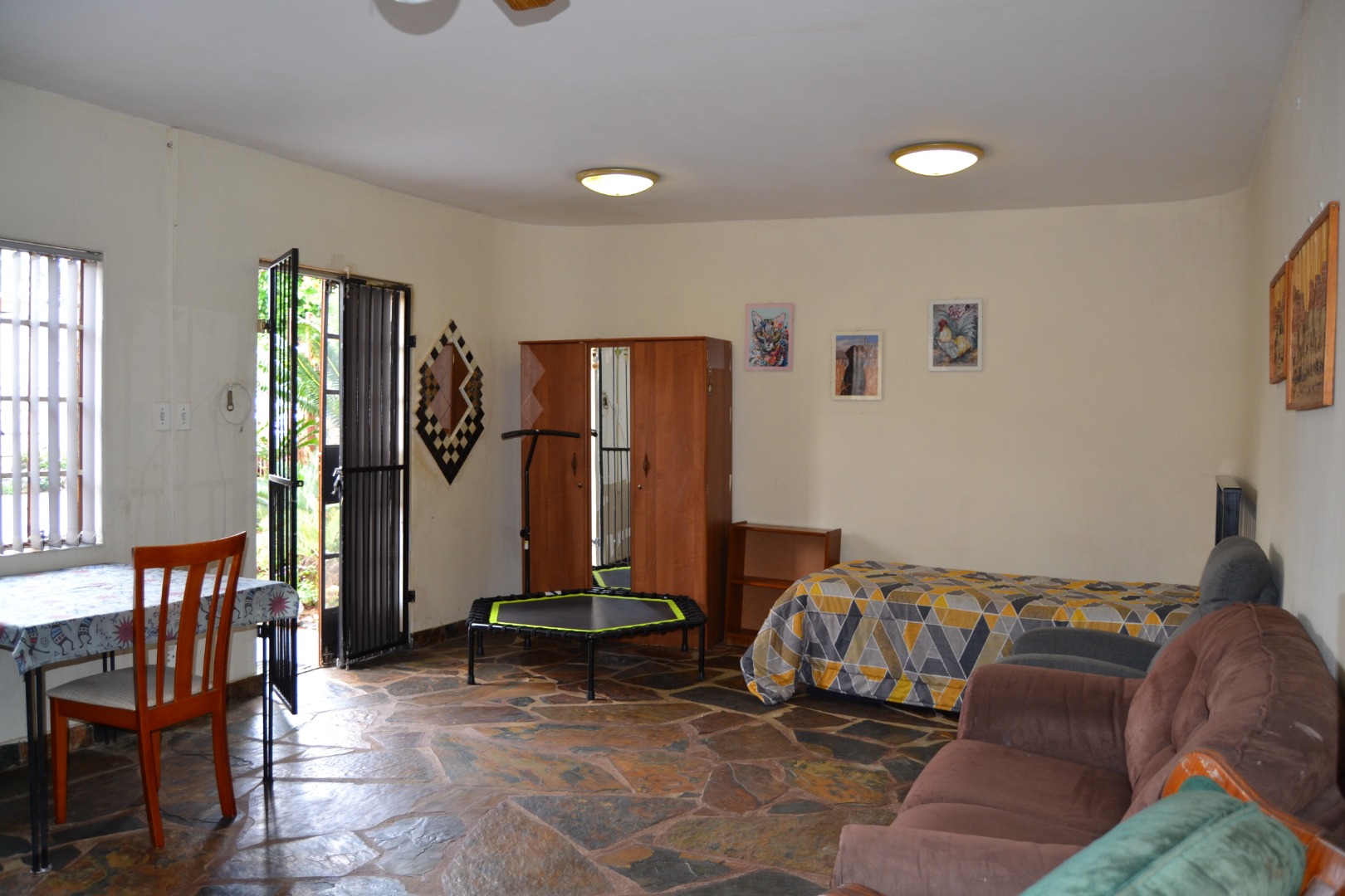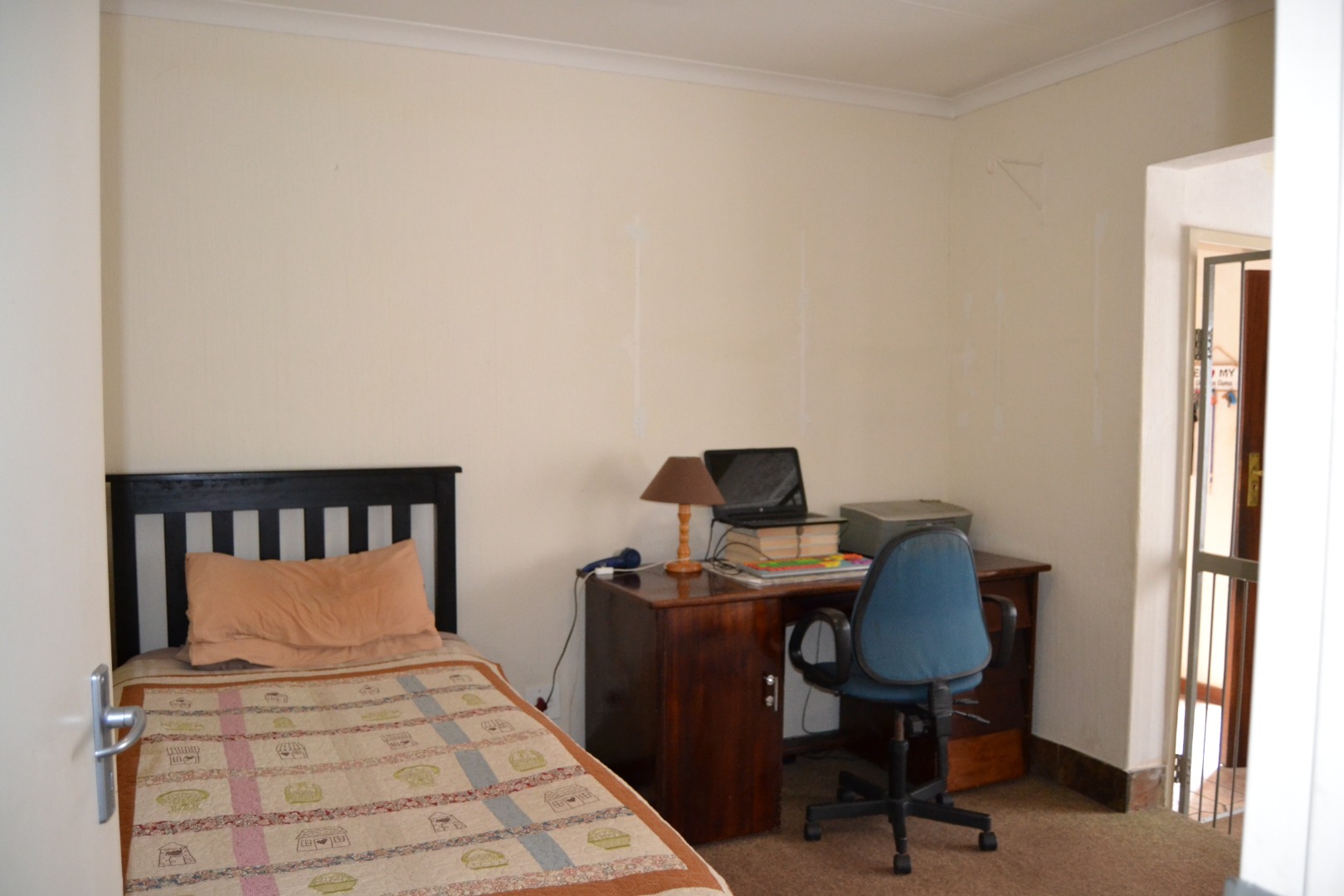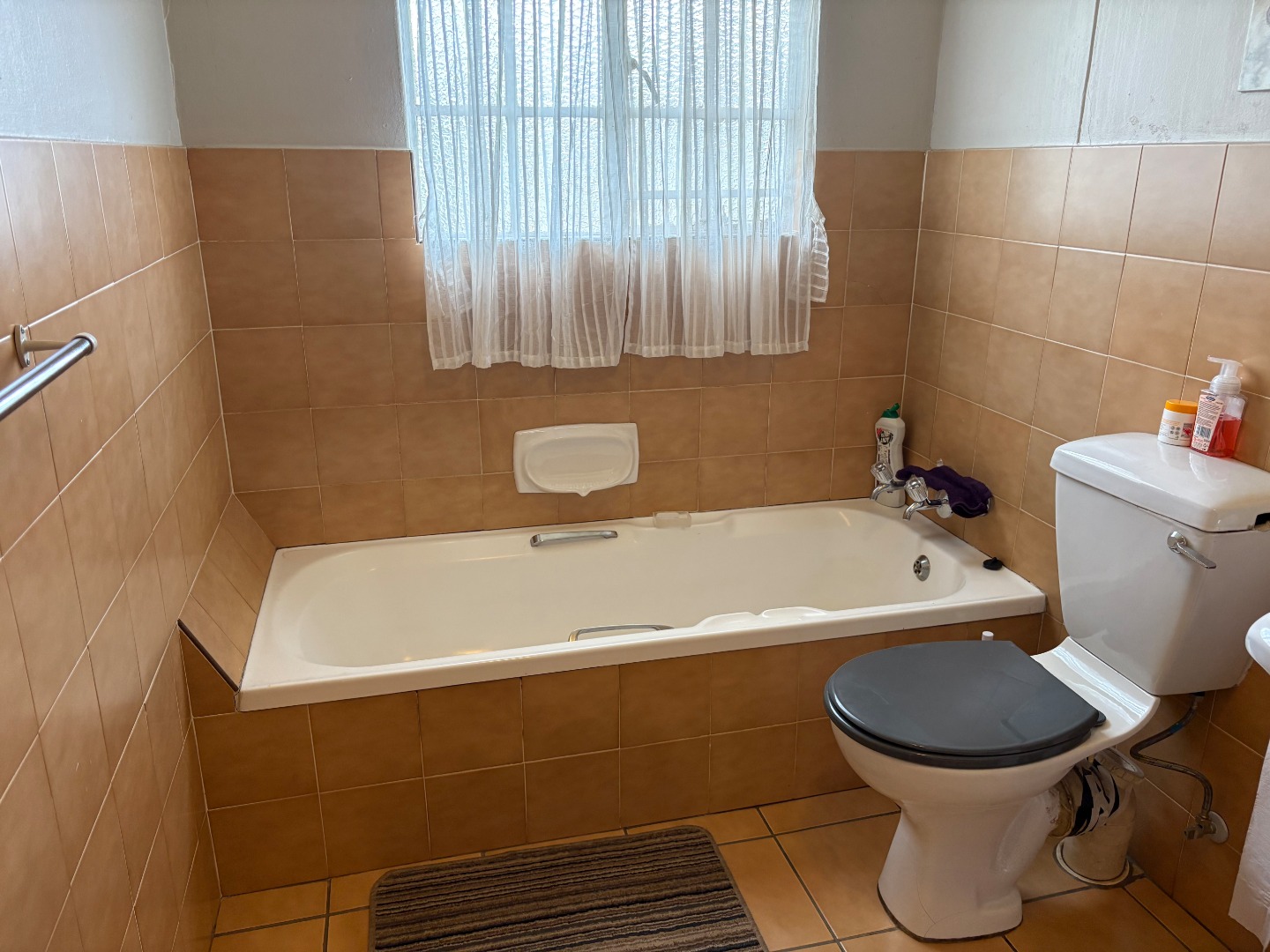 All three bedrooms are well-appointed and feature ample built-in cupboards. The main bathroom includes a shower, bath, and loo, while the main bedroom is fitted with an additional guest loo for added convenience.