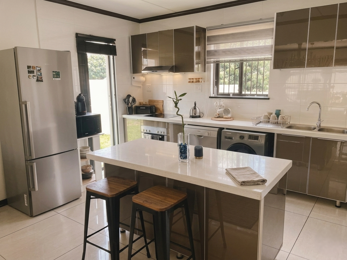 The layout is perfectly designed for modern living, featuring three comfortable bedrooms plus a dedicated office space—ideal for remote work or study. Convenience is key with two full bathrooms and a separate guest toilet for visitors.