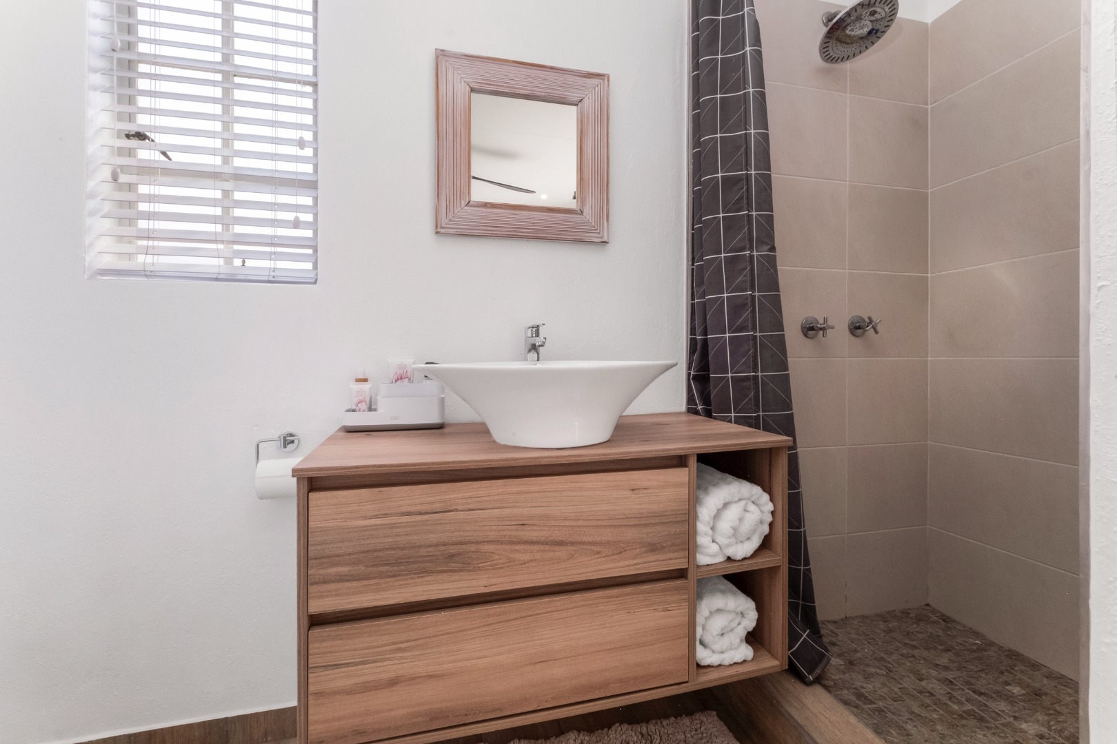 3 Bedrooms, situated in the home are serviced by a family bathroom with corner bath and a modern en suite shower room. The main bedroom includes an aircon. The 4th bedroom, separate from the main house, has an aircon and is utilised as a guest bedroom, serviced by a shower. An ideal work from home office option.