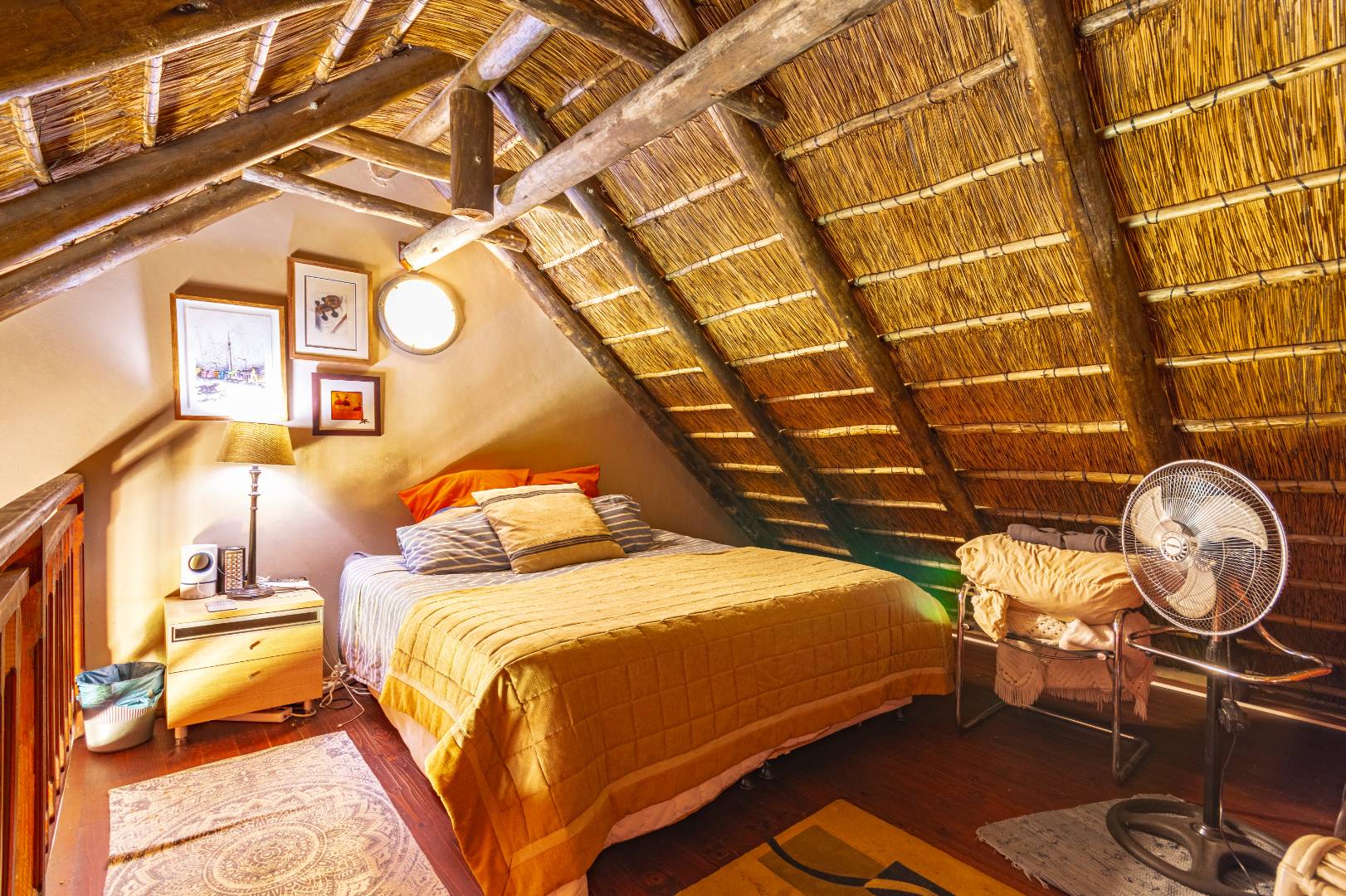 Third level retreat: Private bedroom comfortably fitting a queen bed, opening onto a balcony with beautiful views.