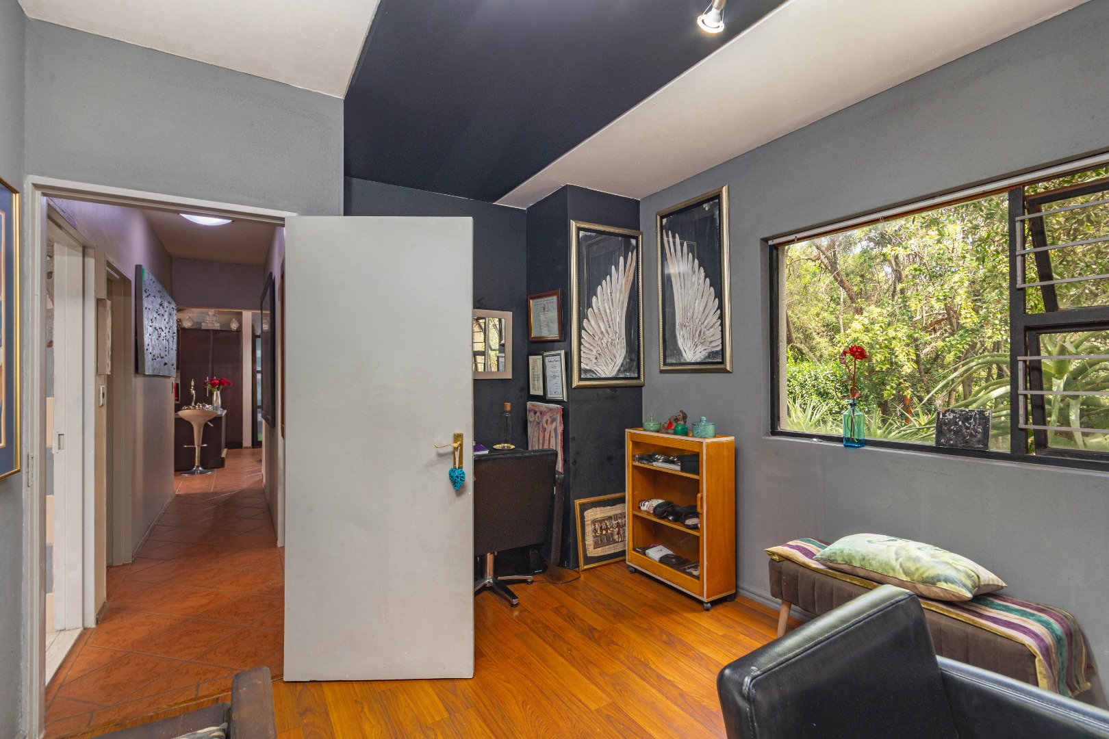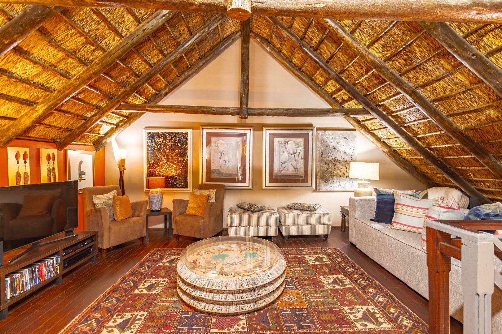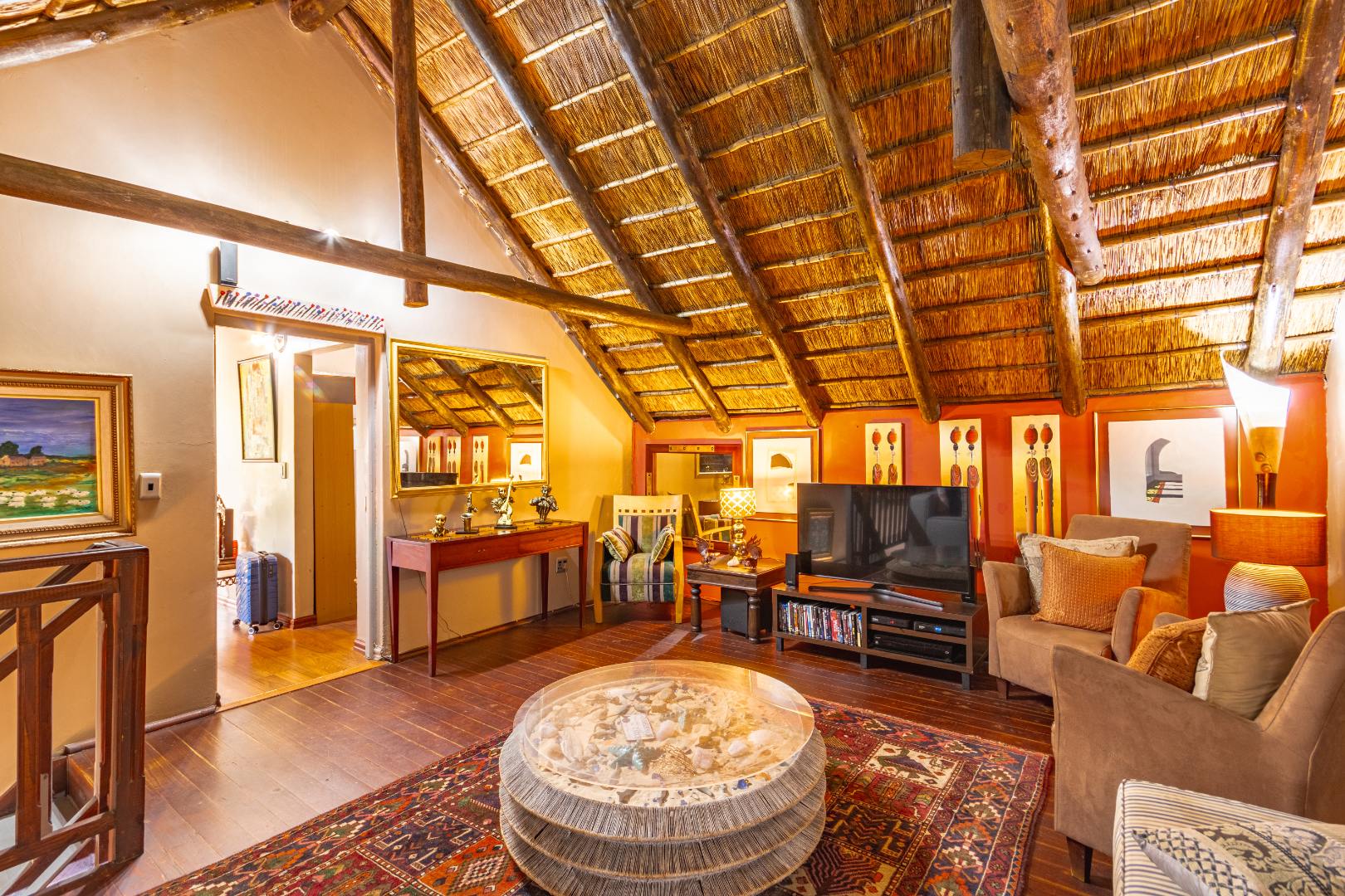 Second level living: A cozy lounge/TV room flows into a versatile study or pyjama lounge, with a bathroom fitted with a shower.