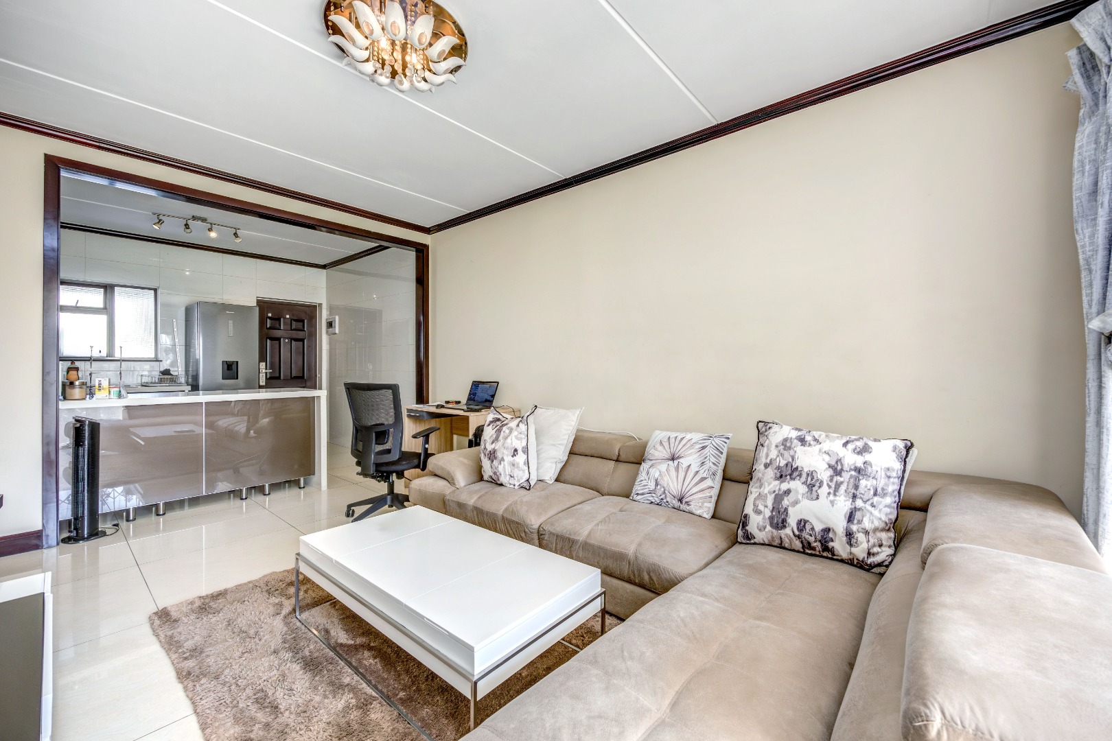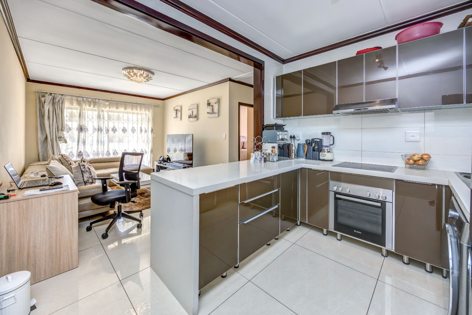 Discover an unparalleled lifestyle within this sophisticated 77 sqm apartment, nestled in a premier security estate in Craigavon, Sandton. Designed for discerning individuals, the residence boasts an open-plan lounge and dining area, seamlessly flowing into a contemporary kitchen. Adorned with sleek finishes and abundant natural light, these spaces provide an elegant backdrop for both relaxation and entertaining. The modern kitchen, equipped with state-of-the-art appliances, invites culinary exploration.