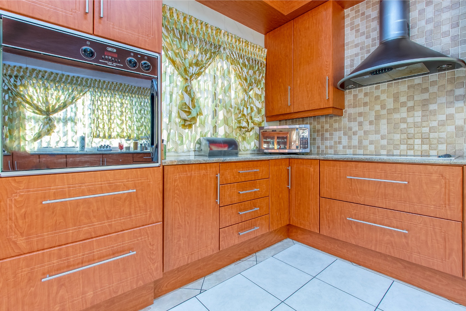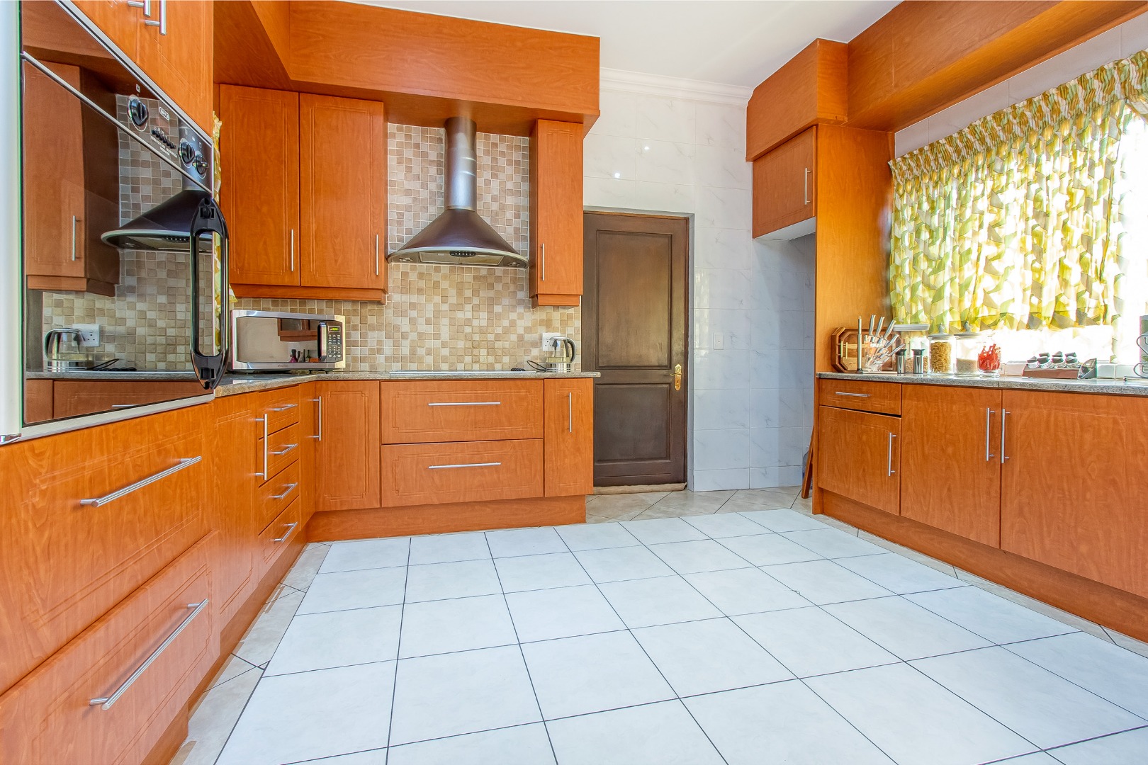 The gourmet kitchen is a culinary masterpiece offering an eye-level oven, granite countertops, abundant cabinetry, and a separate scullery with space for four appliances, ensuring everyday tasks are neatly tucked away.