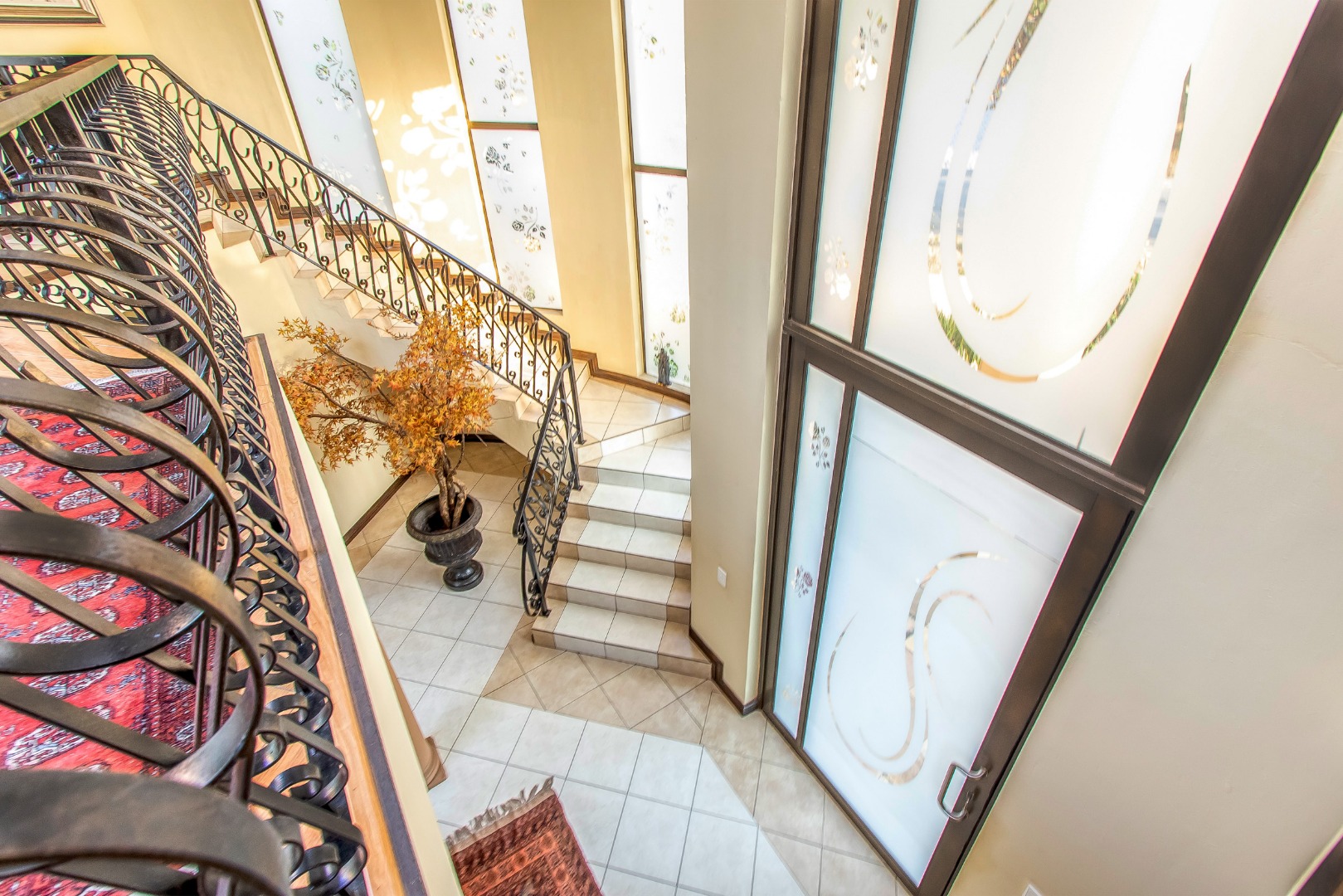 This immaculate four-bedroom, three-bathroom residence offers a harmonious blend of luxury and comfort, where every space is thoughtfully curated. The captivating entrance highlighted by architectural stained glass and bathed in sunlight sets the tone for the refined interiors that follow.