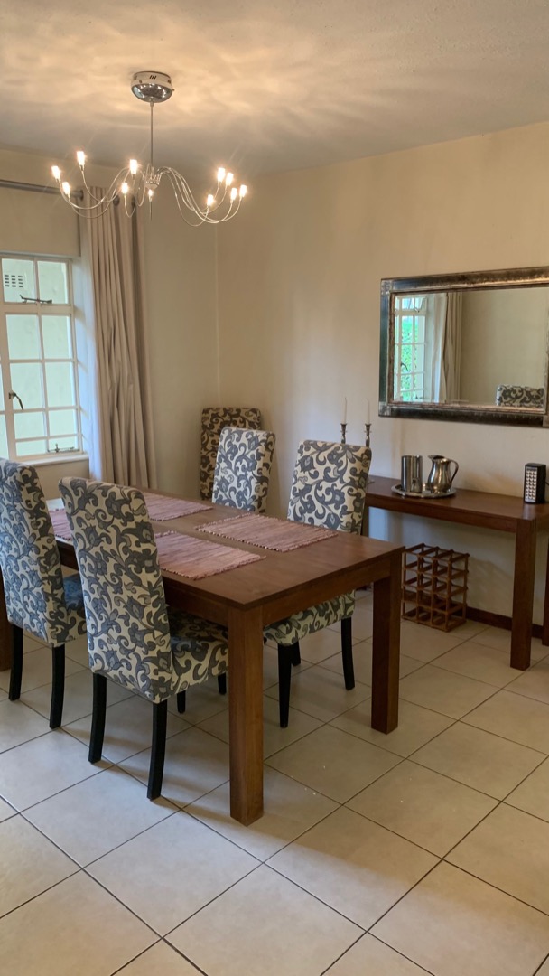 Super fully furnished 2 bedroom garden apartment is located in quiet and lush Del Prado, with 24/7 manned guard house at the entrance. Conveniently located across the road from Hobart Shopping Centre with a variety of flagship stores, restaurants and coffee bars - within walking distance to Virgin Active and Gautrain bus stop.