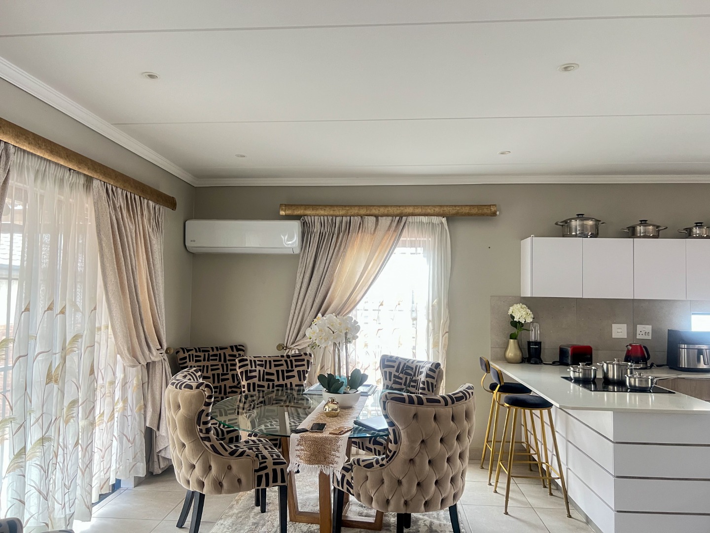 Beautiful 3-Bedroom Double-Storey Home in Lion Pride Estate This lovely double-storey home is located in the secure and popular Lion Pride Estate, perfect for a family looking for comfort and peace of mind. The home offers 3 bedrooms and 2.5 bathrooms, with enough space for everyday living and entertaining. It sits on a 240 sqm stand with a floor size of 127 sqm. Downstairs, you’ll find a spacious open-plan layout that brings together the kitchen, dining area, and lounge, creating a warm and welcoming feel. The kitchen is modern and includes a pantry for extra storage. The living area is fitted with an air conditioner, making it comfortable all year round. Upstairs features three well-sized bedrooms and two bathrooms. The main bedroom has an en-suite bathroom and is also fitted with an air conditioner for added comfort. A guest toilet is conveniently placed downstairs. Extra features: • Fibre-ready for fast internet • Prepaid electricity and water • Wendy house outside for additional storage Set in a secure estate, this home is a great option for comfortable and easy living.