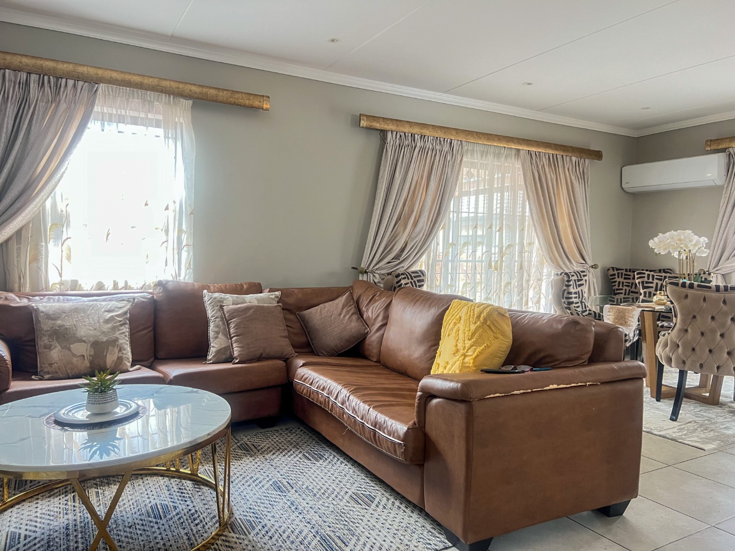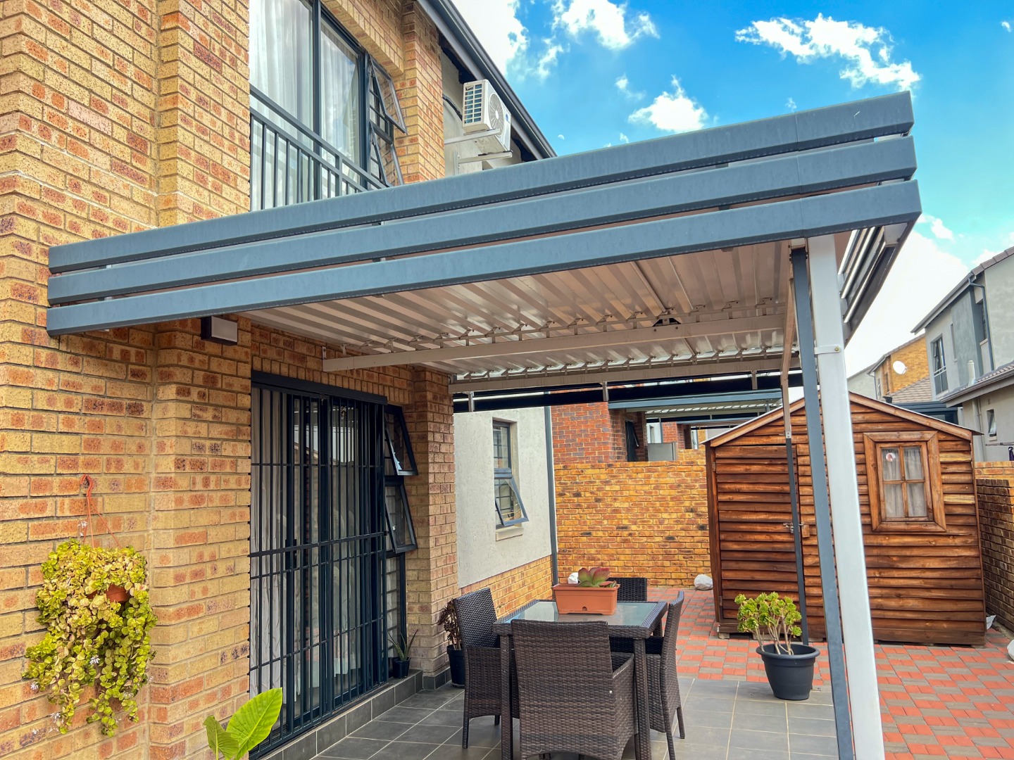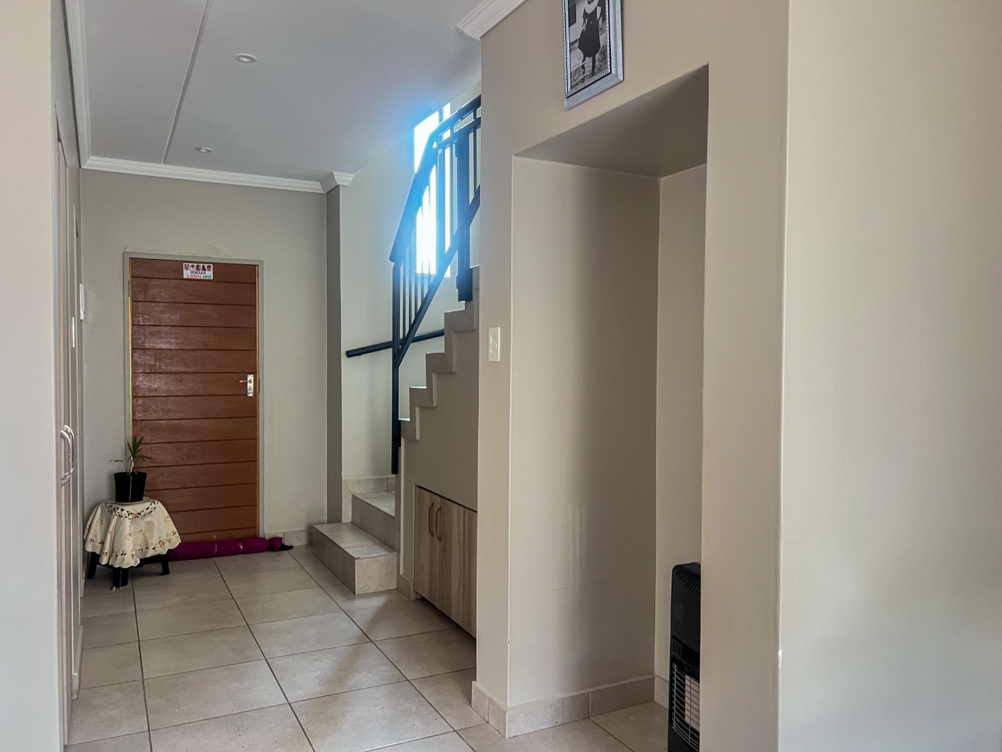 Beautiful 3-Bedroom Double-Storey Home in Lion Pride Estate This lovely double-storey home is located in the secure and popular Lion Pride Estate, perfect for a family looking for comfort and peace of mind. The home offers 3 bedrooms and 2.5 bathrooms, with enough space for everyday living and entertaining. It sits on a 240 sqm stand with a floor size of 127 sqm. Downstairs, you’ll find a spacious open-plan layout that brings together the kitchen, dining area, and lounge, creating a warm and welcoming feel. The kitchen is modern and includes a pantry for extra storage. The living area is fitted with an air conditioner, making it comfortable all year round. Upstairs features three well-sized bedrooms and two bathrooms. The main bedroom has an en-suite bathroom and is also fitted with an air conditioner for added comfort. A guest toilet is conveniently placed downstairs. Extra features: • Fibre-ready for fast internet • Prepaid electricity and water • Wendy house outside for additional storage Set in a secure estate, this home is a great option for comfortable and easy living.