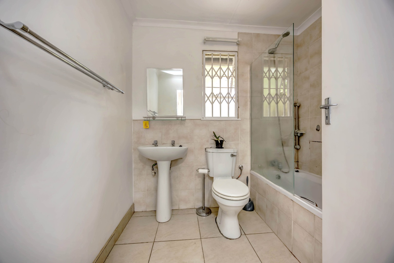 The main large overlooks the front garden and is sunny and bright. Both the main and 2nd bedroom has ample built-in cupboards and is tiled. The bathroom has a bath with a shower over the bath and toilet and basin. The whole townhouse is tiled throughout.